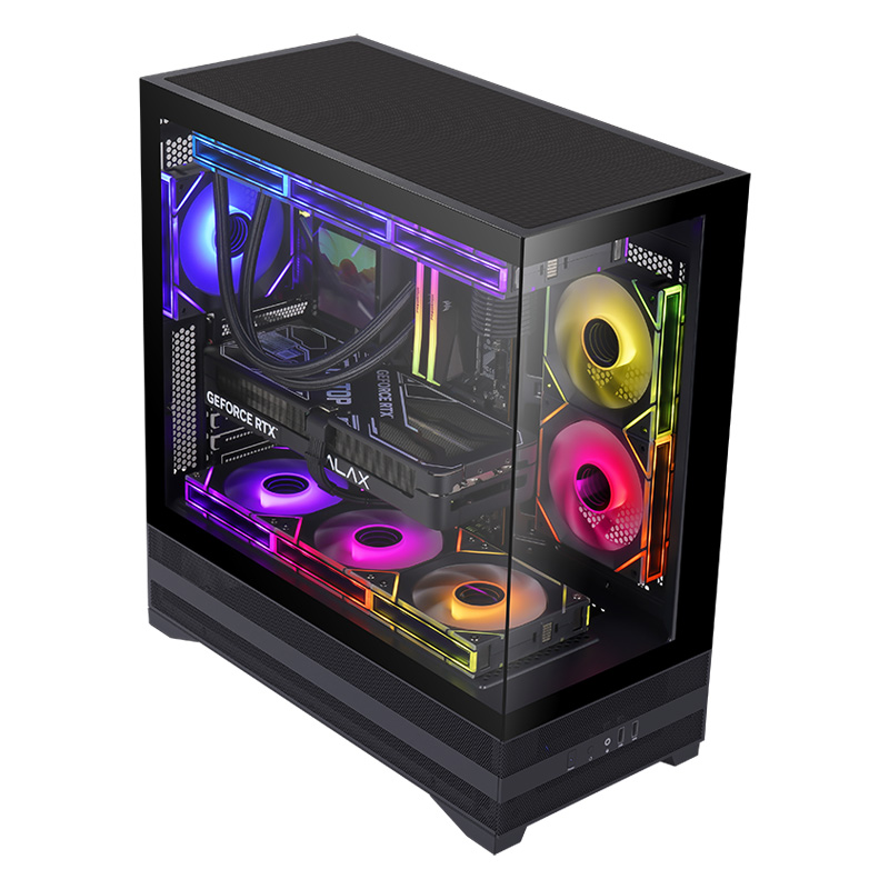 先馬(SAMA)驚鴻2 黑色ATX海景房游戲電腦主機箱 電源倉網(wǎng)孔/高效散熱/快拆/支持360水冷/9風(fēng)扇位/427mm長顯卡